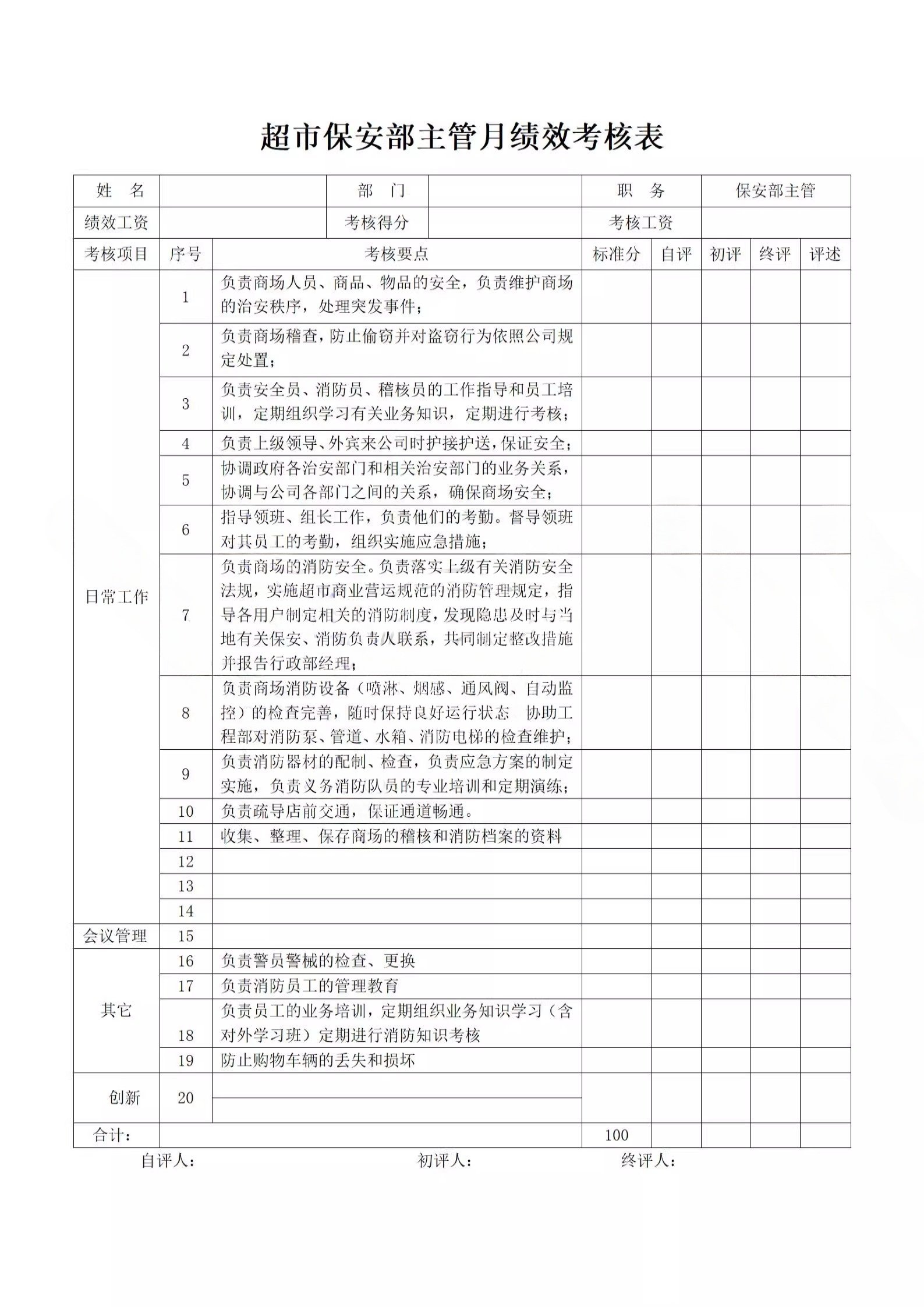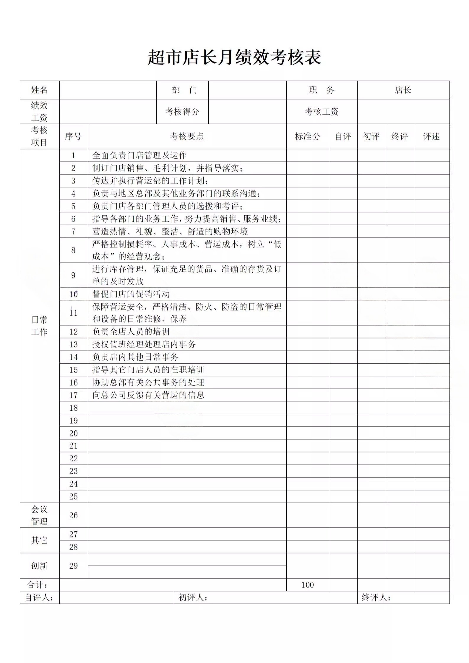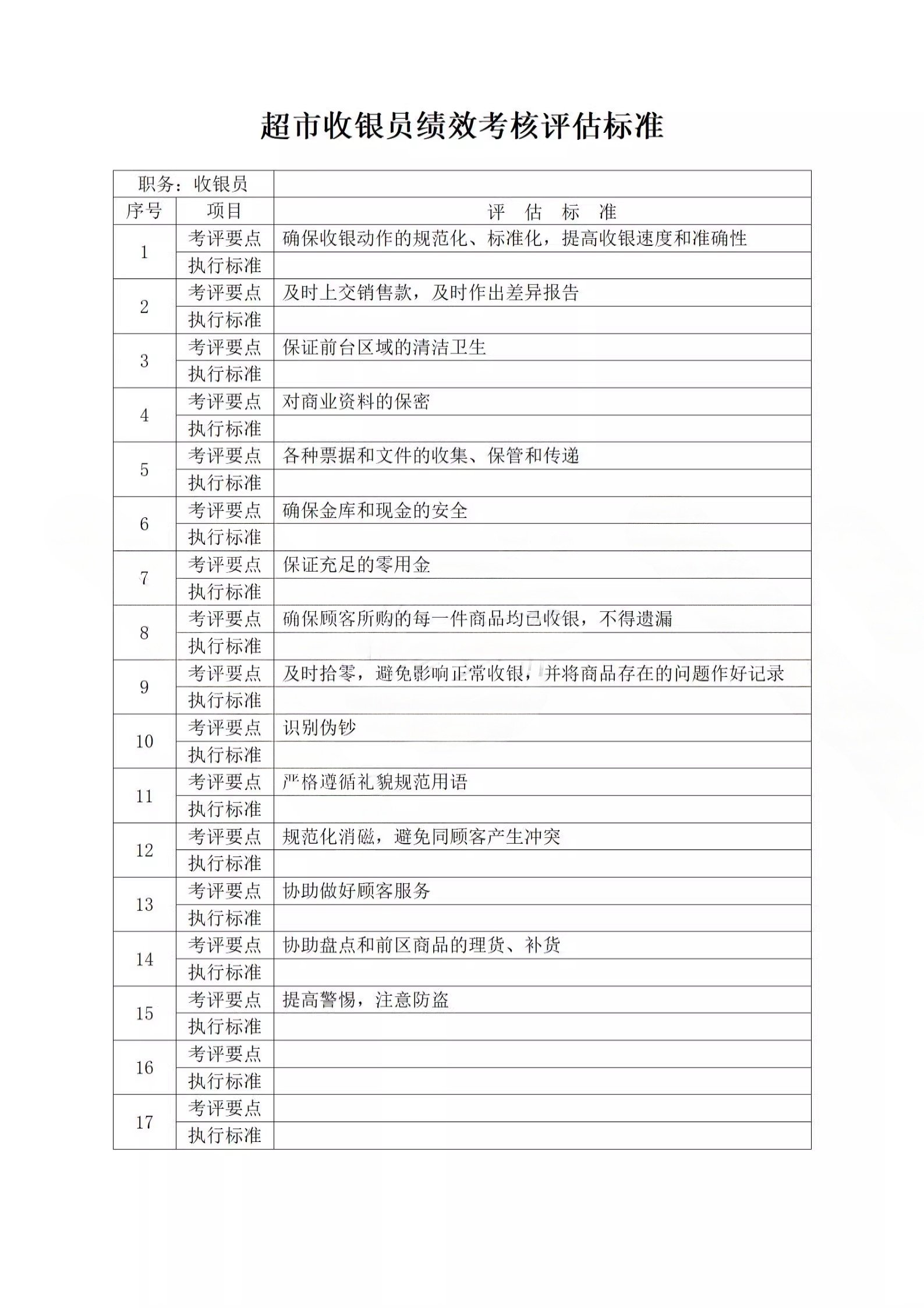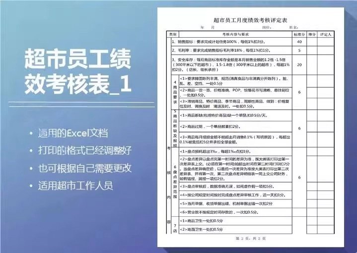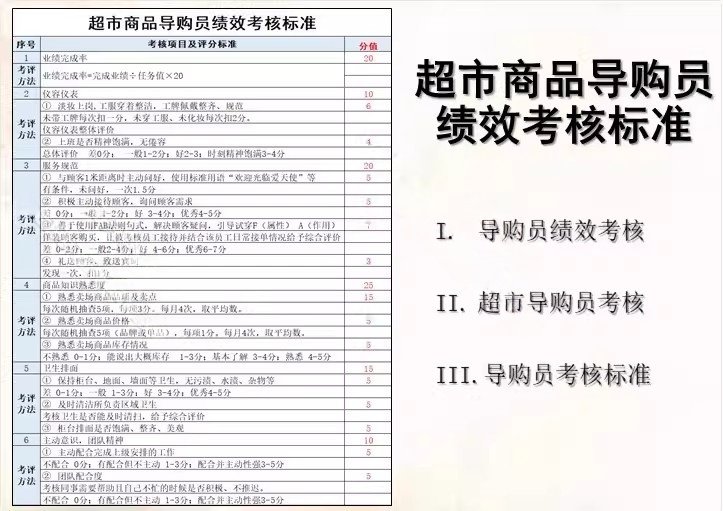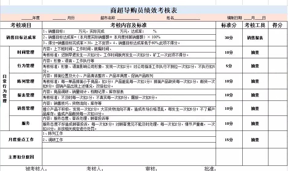超市店长收银员工绩效考核导购人员绩效评估标准方案考核表格